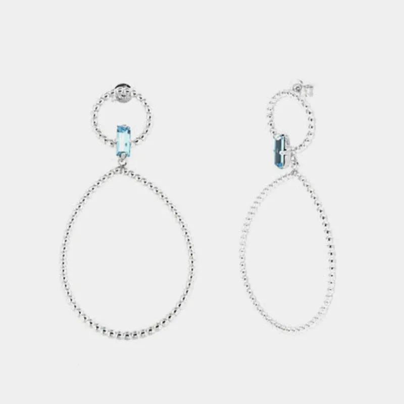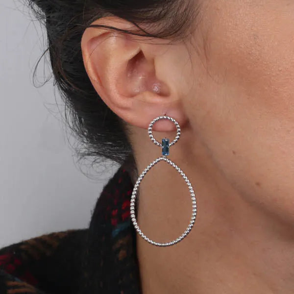 Orecchini in Argento 925 con doppi cerchi puntellati e cristallo azzurro centrale