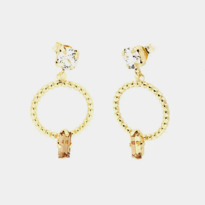 Orecchini in Argento 925 con punto luce bianco a lobo e cerchio pendente con cristallo champagne