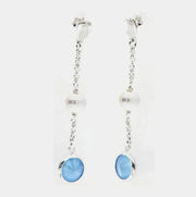 Orecchini in Argento 925 pendenti con cristallo azzurro e perla bianca centrale