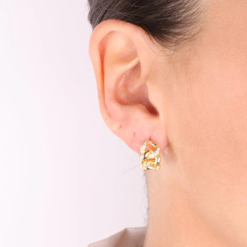 Orecchini in Argento 925 mini catene impreziosite da zirconi bianchi