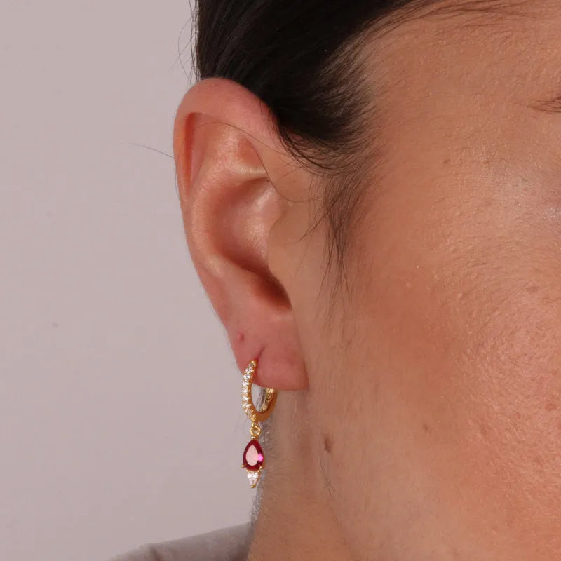 Orecchini in Argento 925 a cerchietto impreziosito da zirconi bianchi e zircone viola pendente
