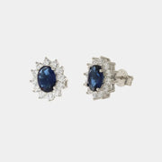 Orecchini in Argento 925 con zirconi bianchi e zircone centrale effetto blu zafiro