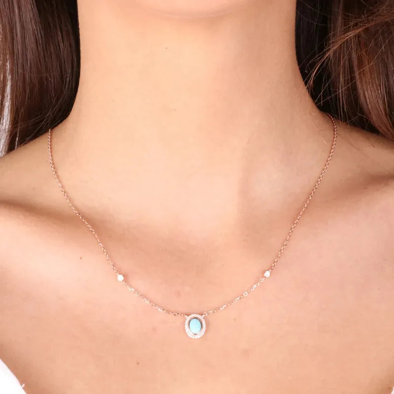 Collana in Argento 925 con ciondolo a forma di cerchio con  pietra centrale in pasta turchese e zirconi bianchi
