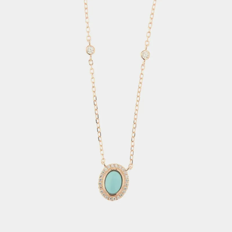 Collier en Argent 925 avec pendentif en forme de cercle avec pierre centrale en pâte turquoise et zircons blancs