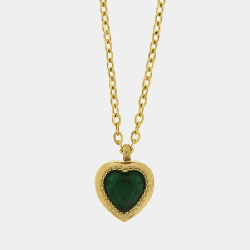 Collana in Acciaio con cuore verde