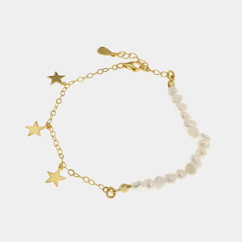 Bracelet en argent 925 avec alternance de perles baroques et d'étoiles pendantes