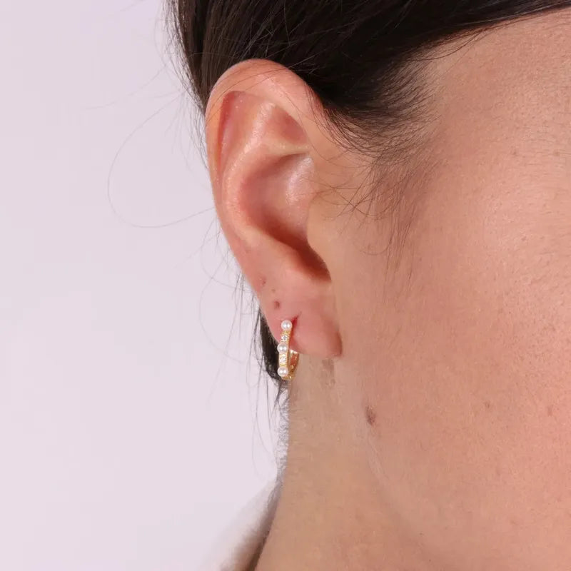 Orecchini in Argento 925 a cerchio con zirconi e perle
