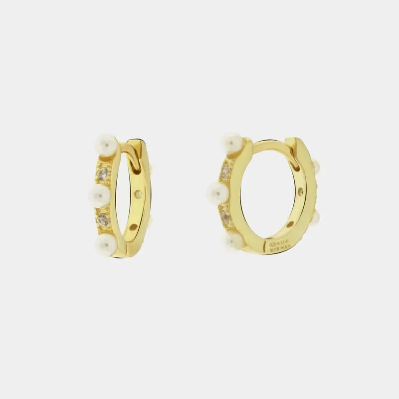 Boucles d'oreilles en argent 925 en forme de cercle avec des zirconiums et des perles