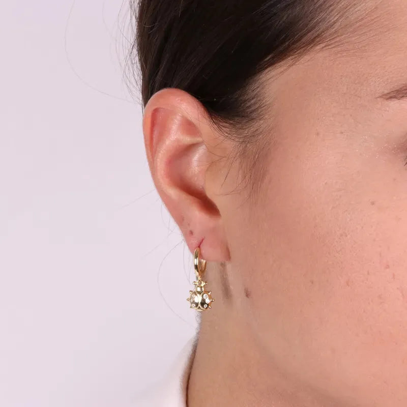 Boucles d'oreilles en argent 925 avec coccinelle porte-bonheur