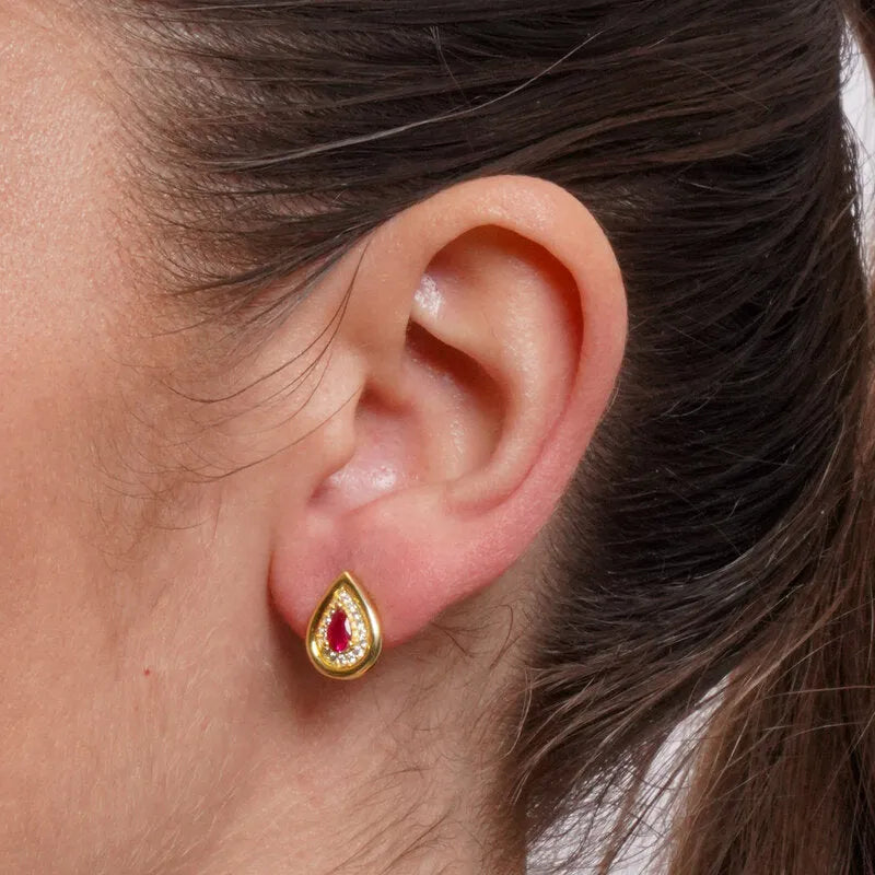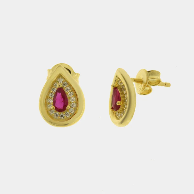 Orecchini in Argento 925 ovale a lobo con punto luce rosso