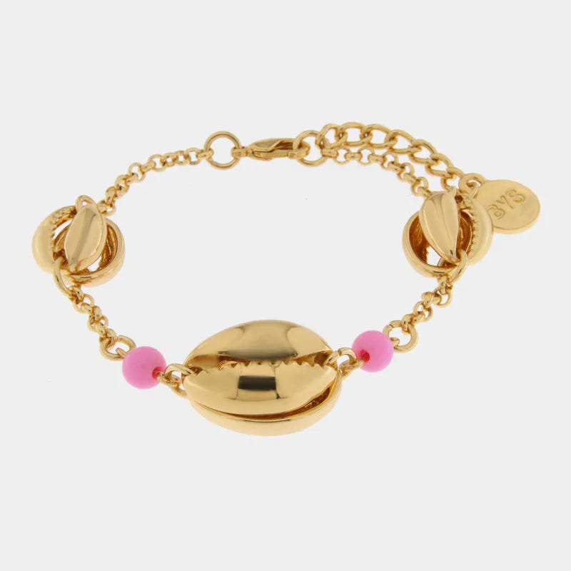Bracciale in Metallo con conchiglia e perline rosa
