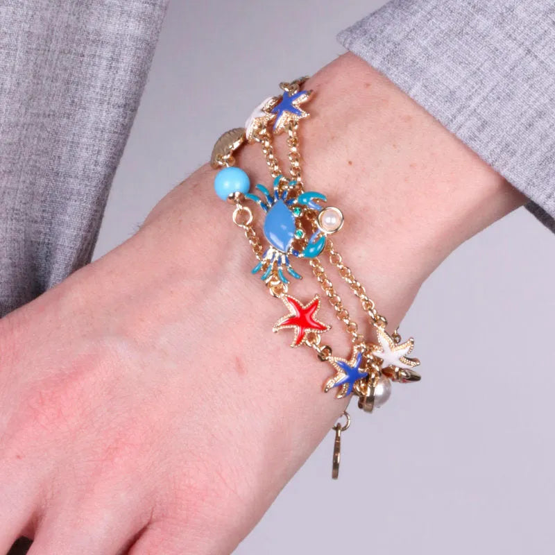 Bracciale in Metallo con granchio, stelle marine, pesciolino e conchiglie