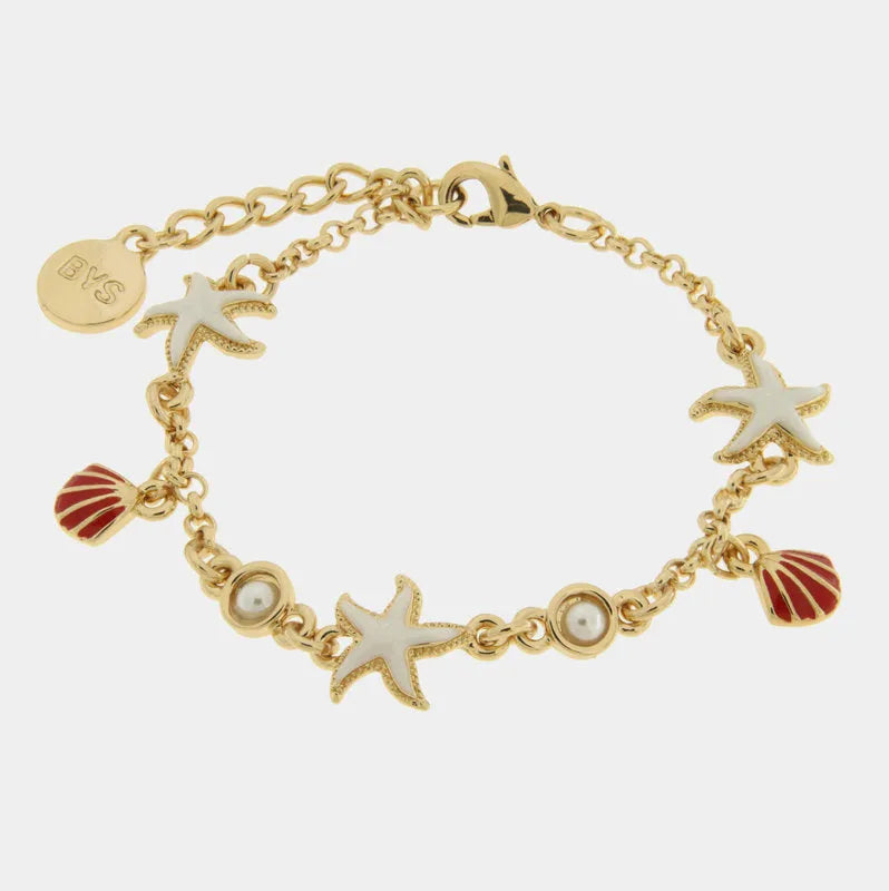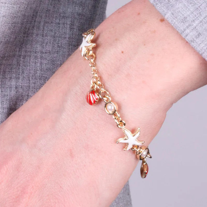 Bracciale in Metallo con stelle marine bianche e conchiglie rosse