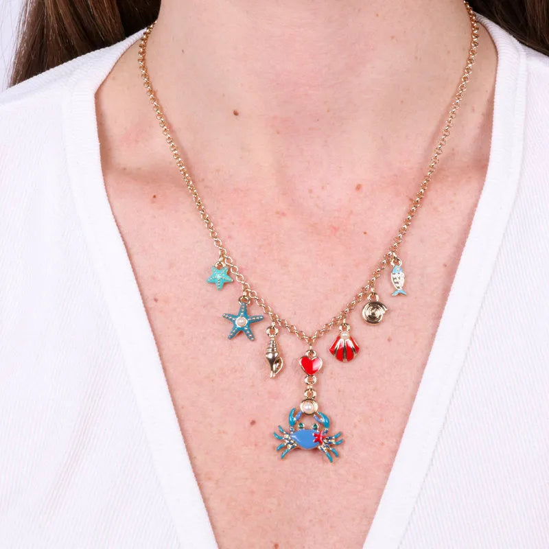 Collana in Metallo con granchio, stelle marine, pesciolino e conchiglie