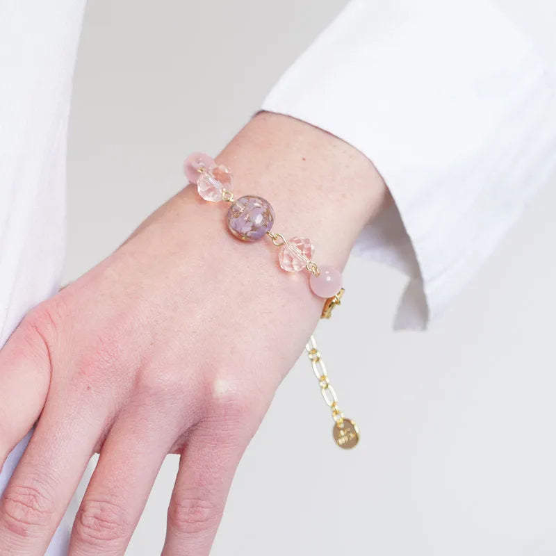 Bracciale in Metallo con cristalli rosa ispirati al vetro di Murano