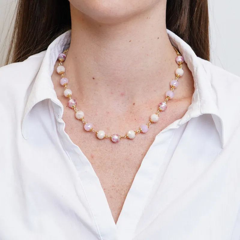 Collana in Metallo con cristalli rosa ispirati al vetro di Murano