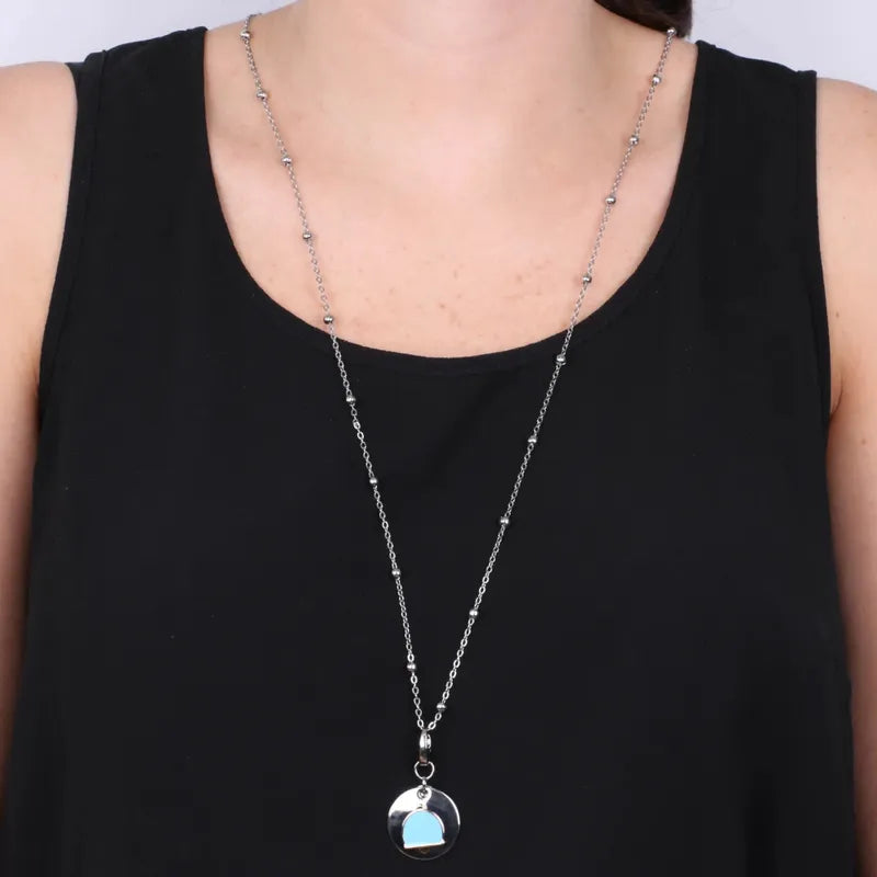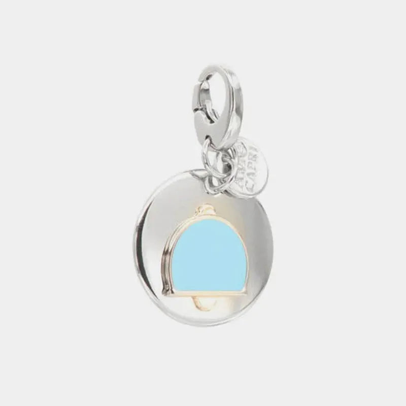 Ciondolo in Metallo a medaglione con simbolo campana in smalto turchese