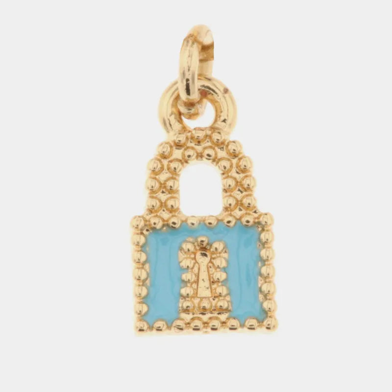 Ciondolo in Metallo lucchetto impreziosito da smalti colorati