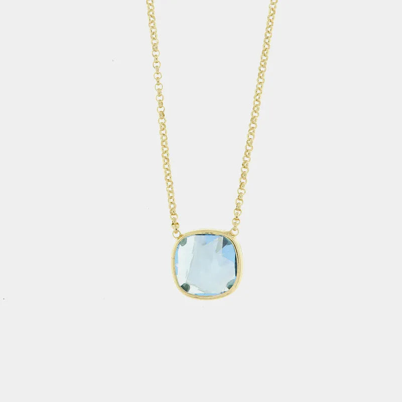 Collana in Argento 925 a forma quadrata con cristallo azzurro