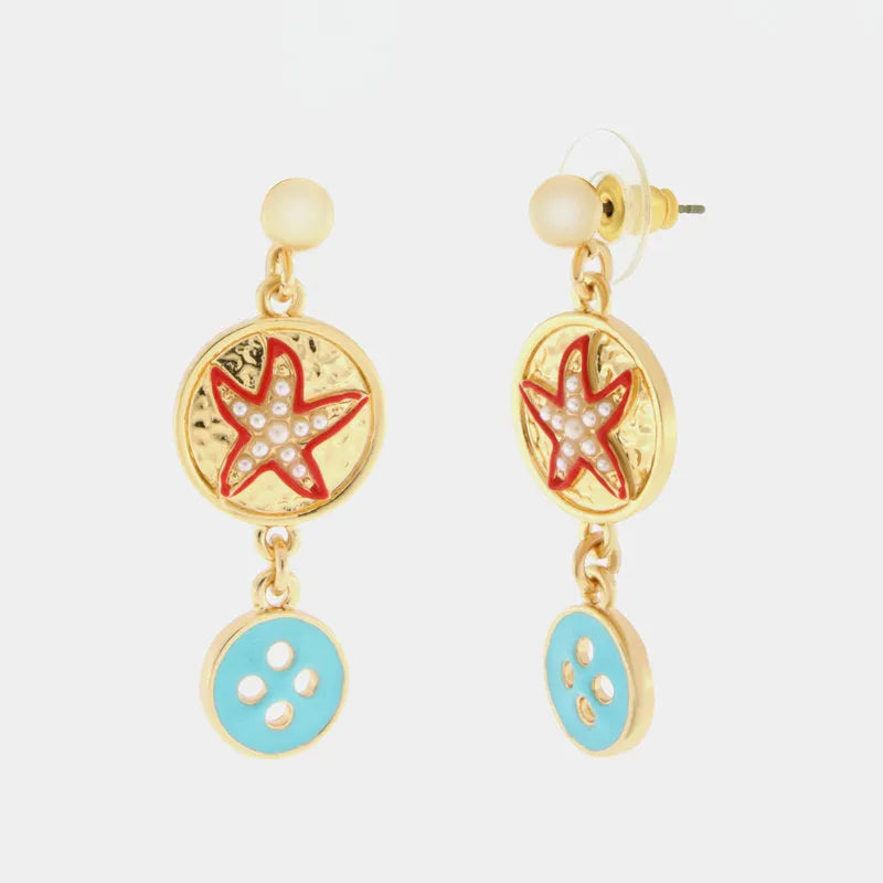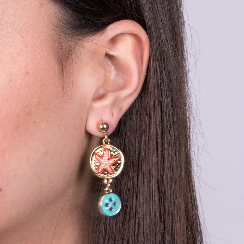 Orecchini in Metallo con stella marina rossa e bottone azzurro