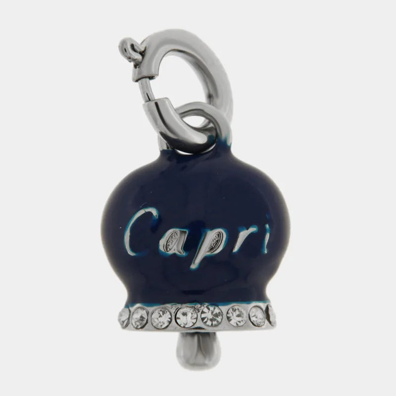 Ciondolo in Acciaio campanella blu con scritta Capri e zirconi