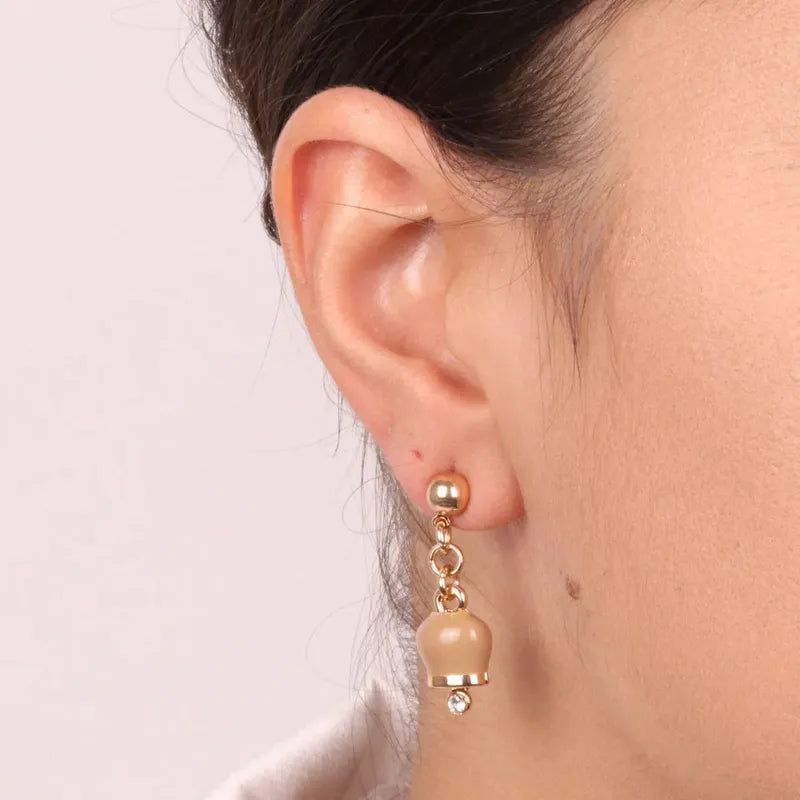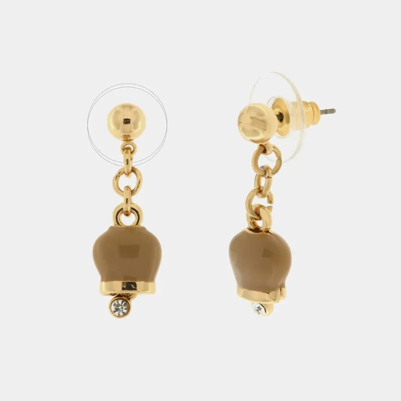 Orecchini in Metallo campanella portafafortuna in smalto marrone