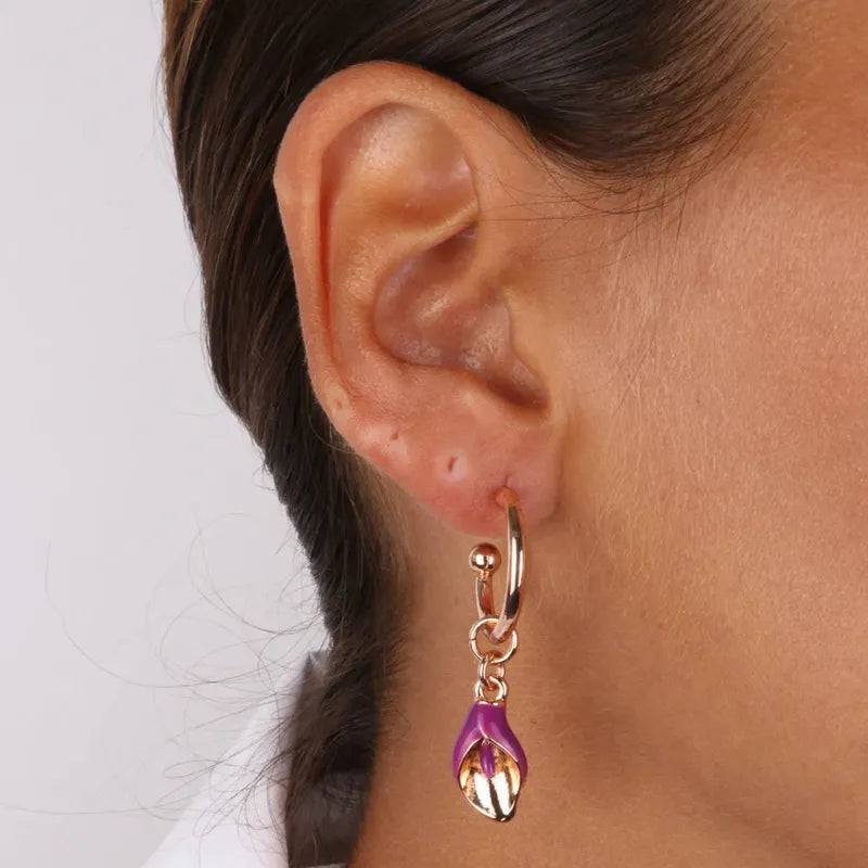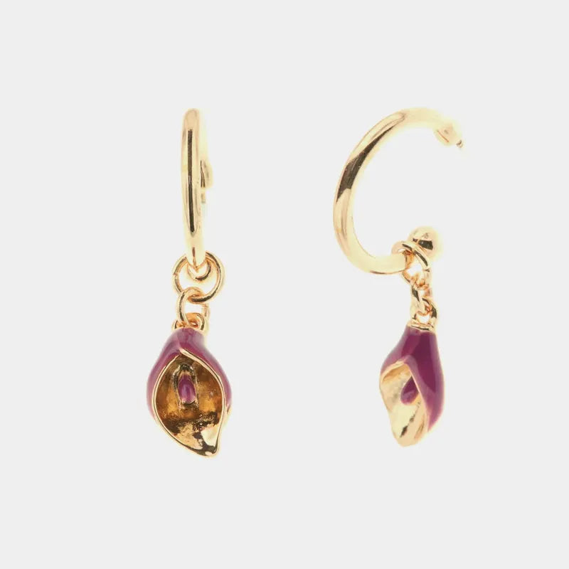 Orecchini in Metallo con pendente a forma di calla smaltata violata