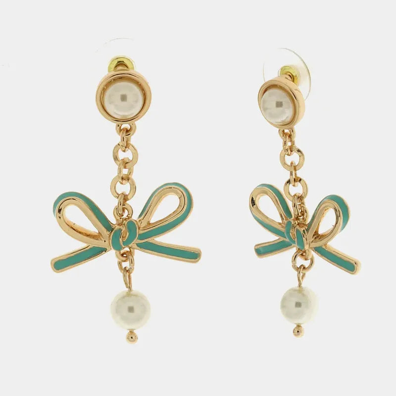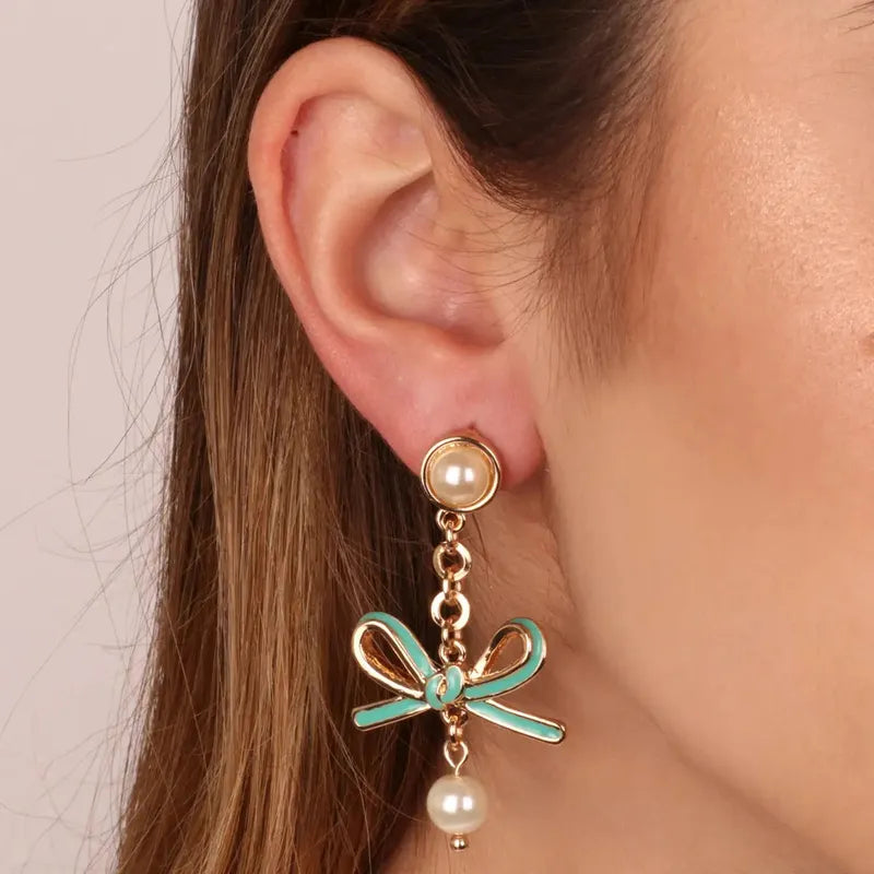 Orecchini in Metallo con perle e fiocco centrale