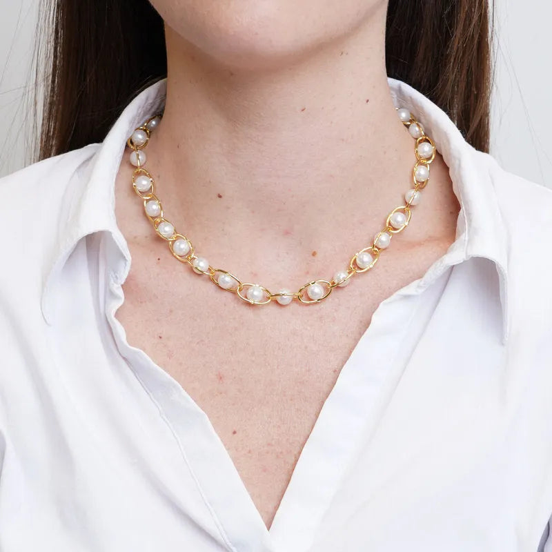 Collana in Metallo a catena con perle