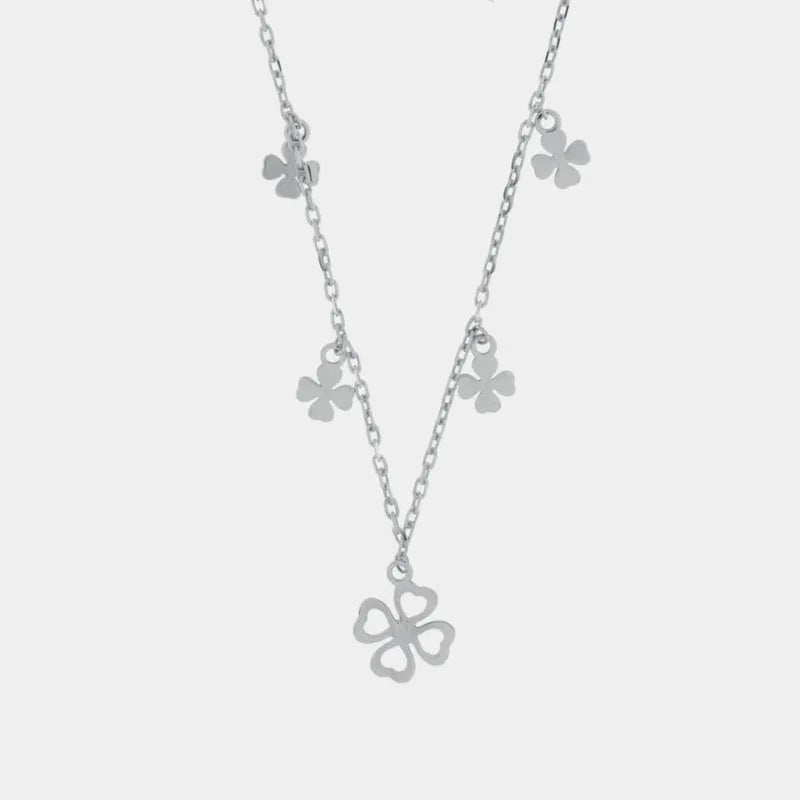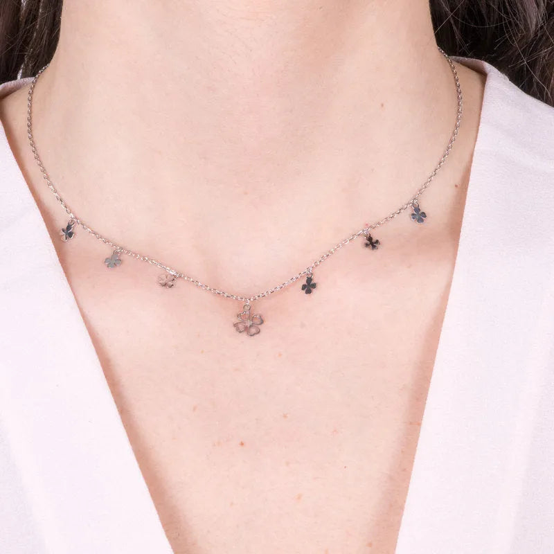 Collana in Argento 925 con ciondoli quadrifoglio placcato rodio