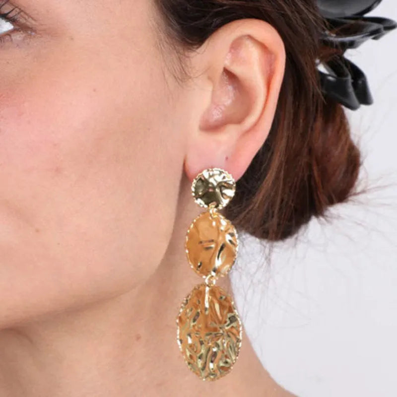 Orecchini in Argento 925 martellati, a tre cerchi crescenti, in stile etrusco