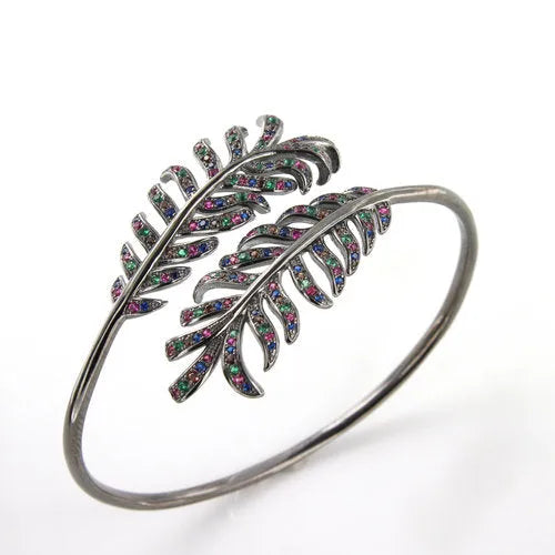 Bracelet rigide en argent 925 avec feuilles multicolores