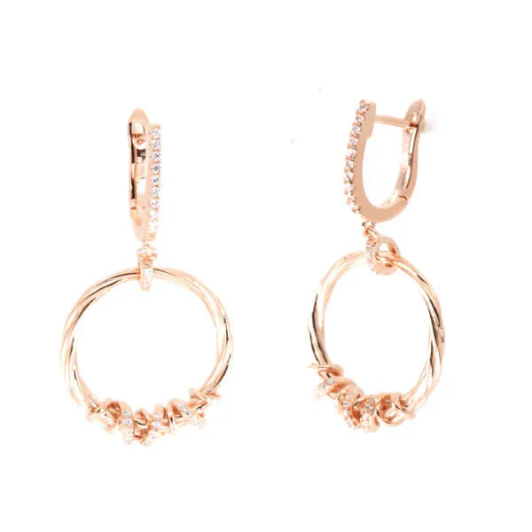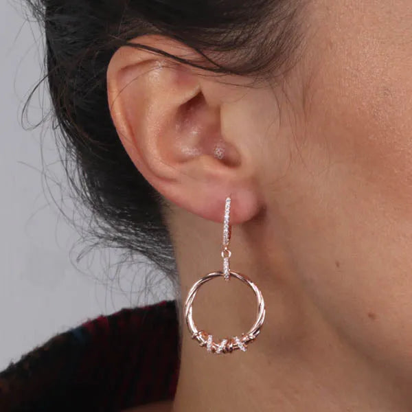 Orecchini in Argento 925 con cerchi pendenti impreziositi da intrecci di zirconi bianchi