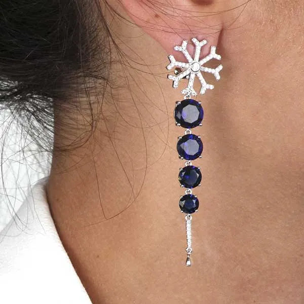 Orecchini in Argento 925  fiocco di neve zirconato con zirconi zaffiro pendenti