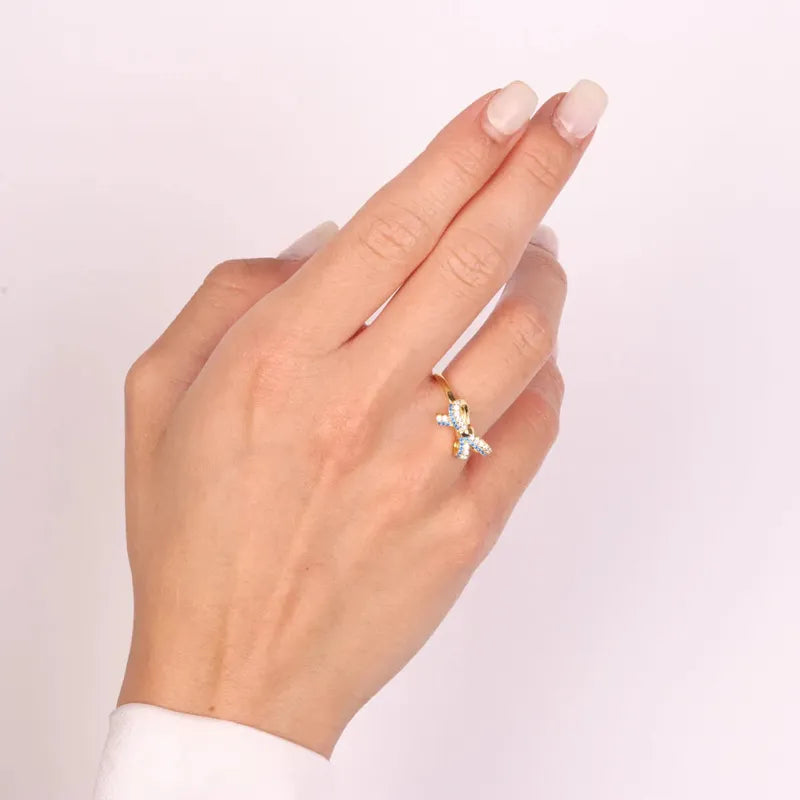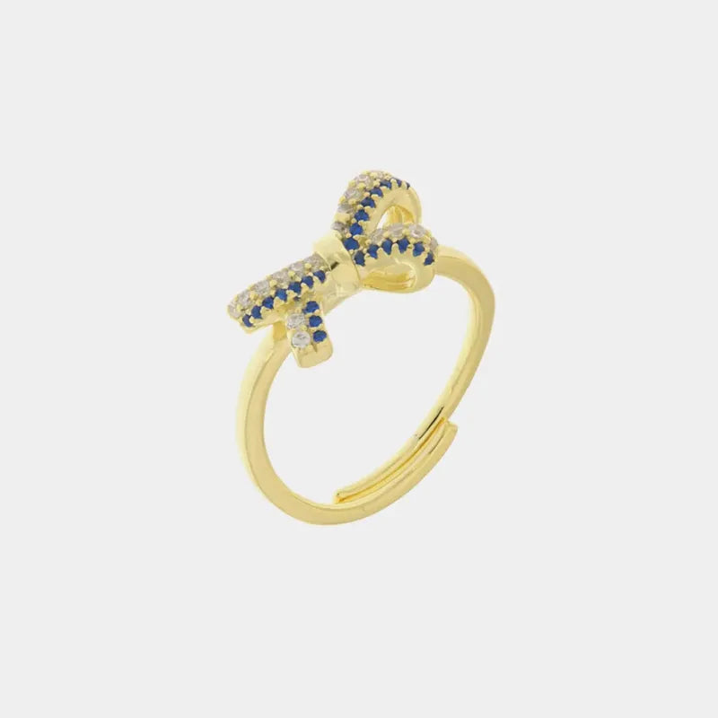 Anello in Argento 925 con fiocco impreziosito da zirconi blu e bianchi