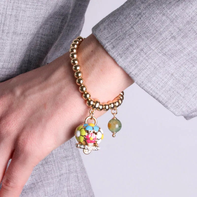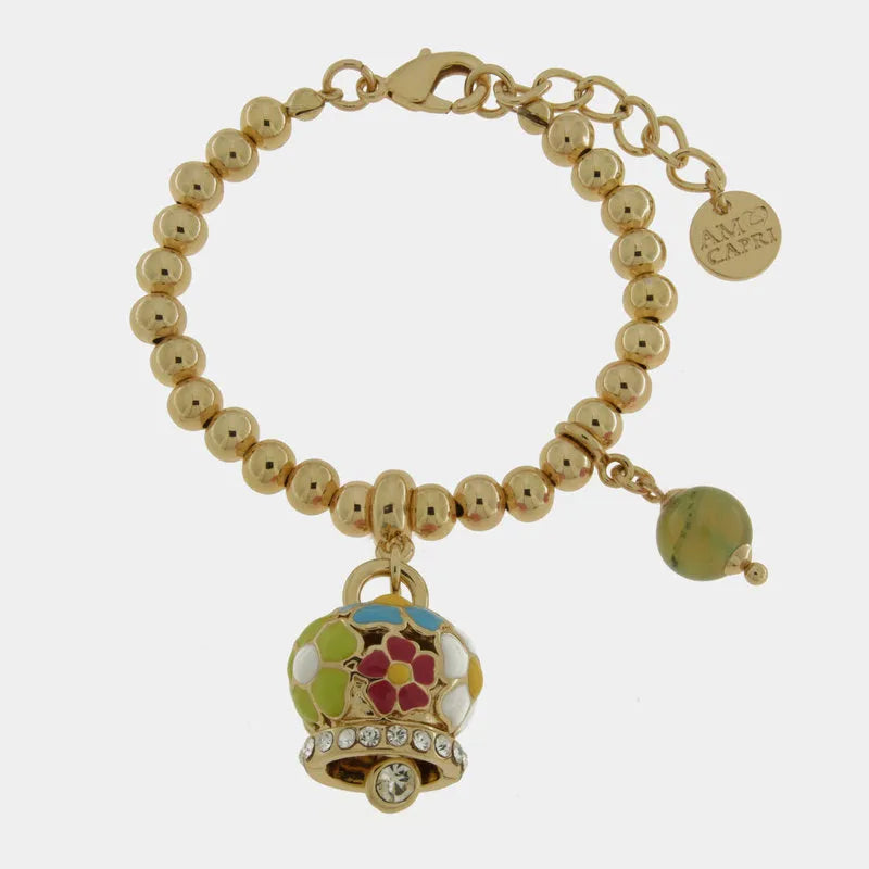 Bracciale in Metallo a perline con campana a fiori multicolor e perla