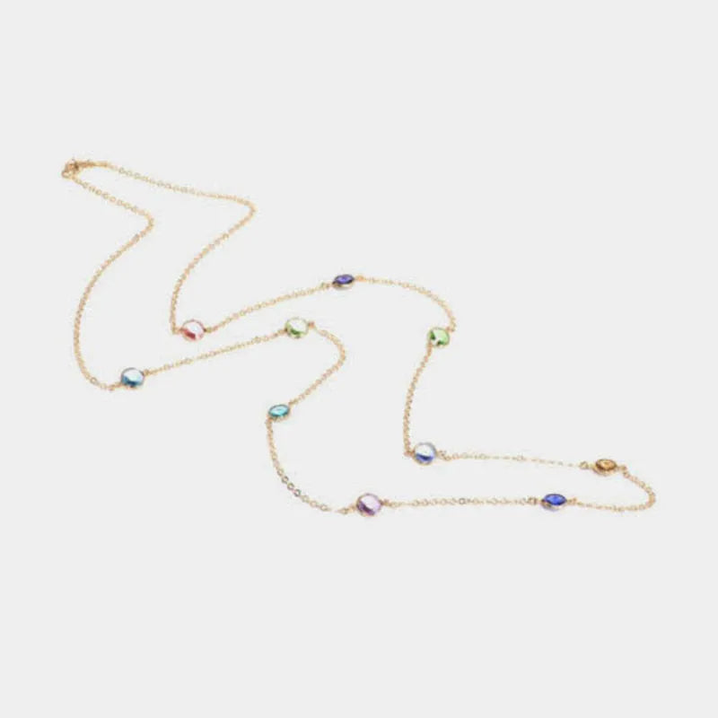 Collana in Argento 925 catena lunga con cristalli multicolore