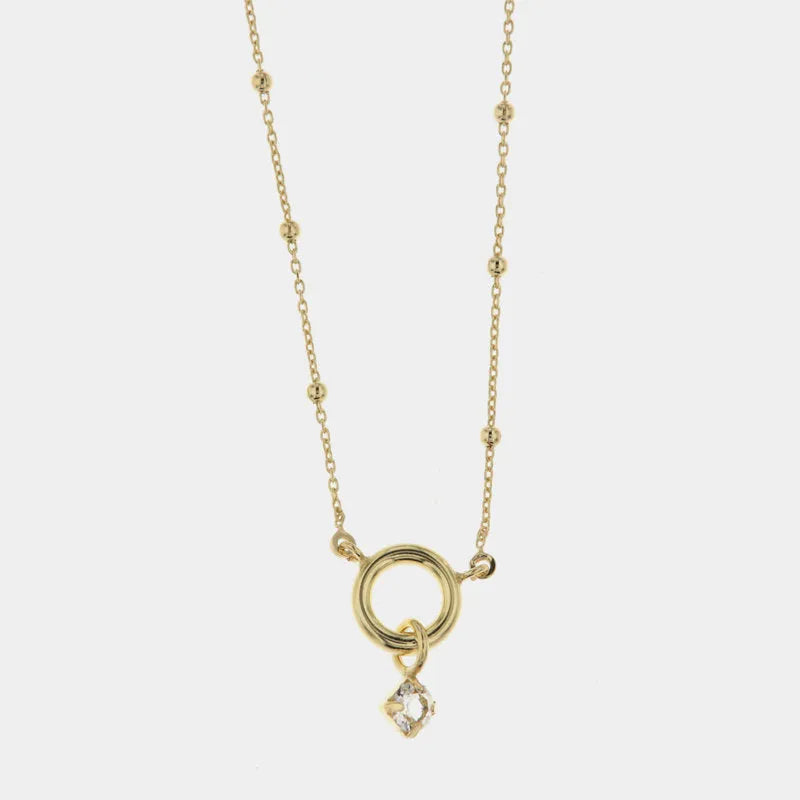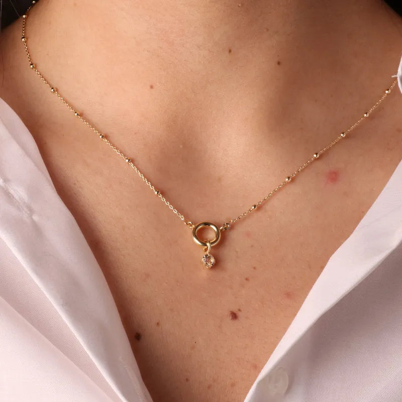 Collana in Argento 925 maglia a pallini, con cerchio e cristallo pendente
