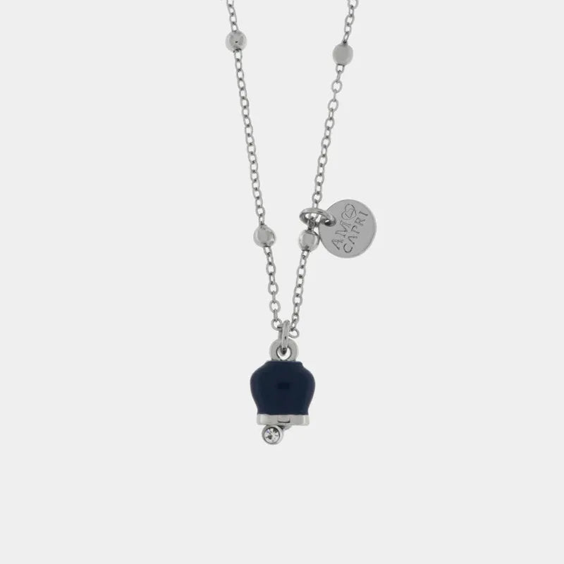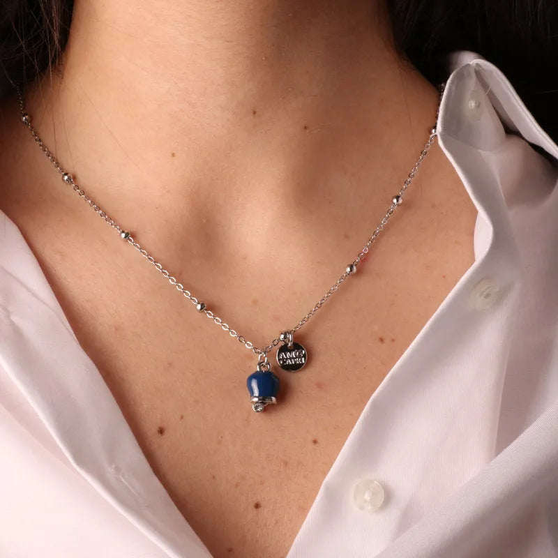 Collana in Metallo con campanella portafortuna pendente blu, impreziosita da punto luce