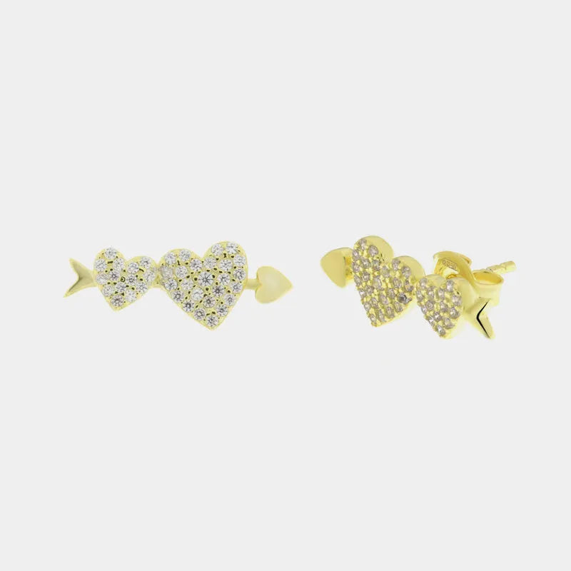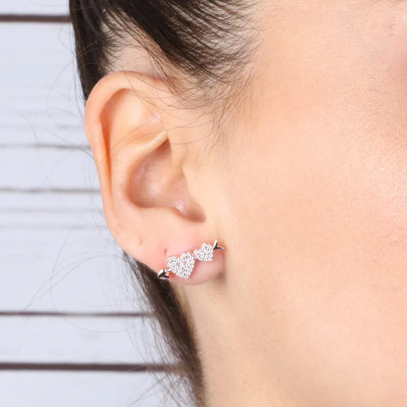 Orecchini in Argento 925 cuori a lobo con zirconi bianchi