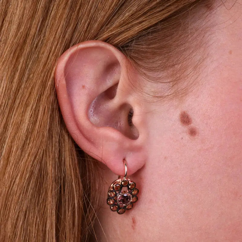 Orecchini in Argento 925 a lobo in stile antico con fiore e zirconi