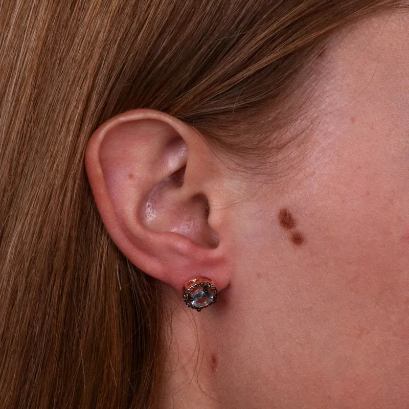 Orecchini in Argento 925 a lobo in stile antico con zircone acquamarina