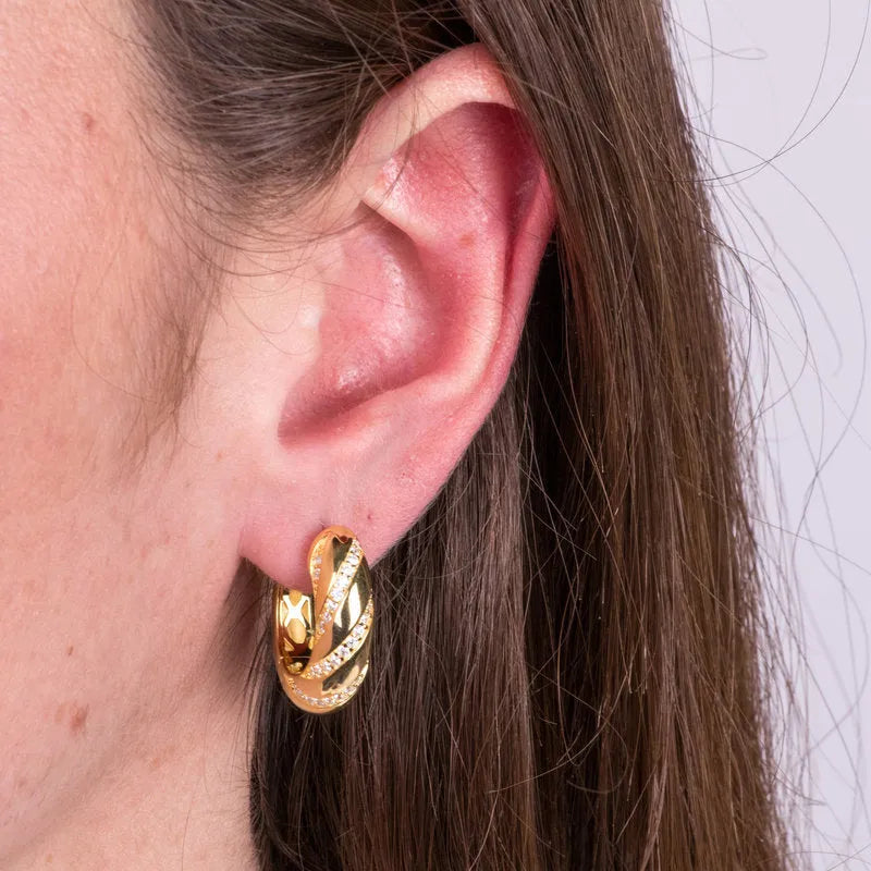Orecchini in Argento 925 cerchio gold con zirconi