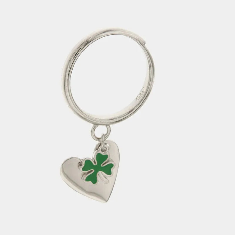 Anello in Argento 925 con cuore e quadrifoglio in smalto verde