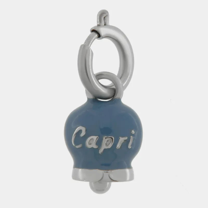 Ciondolo in Acciaio campanella blu cobalto con scritta Capri