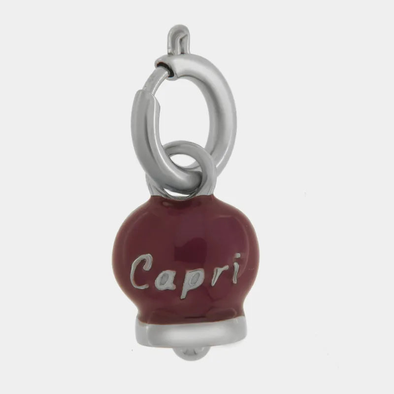 Ciondolo in Acciaio campanella borgogna con scritta Capri