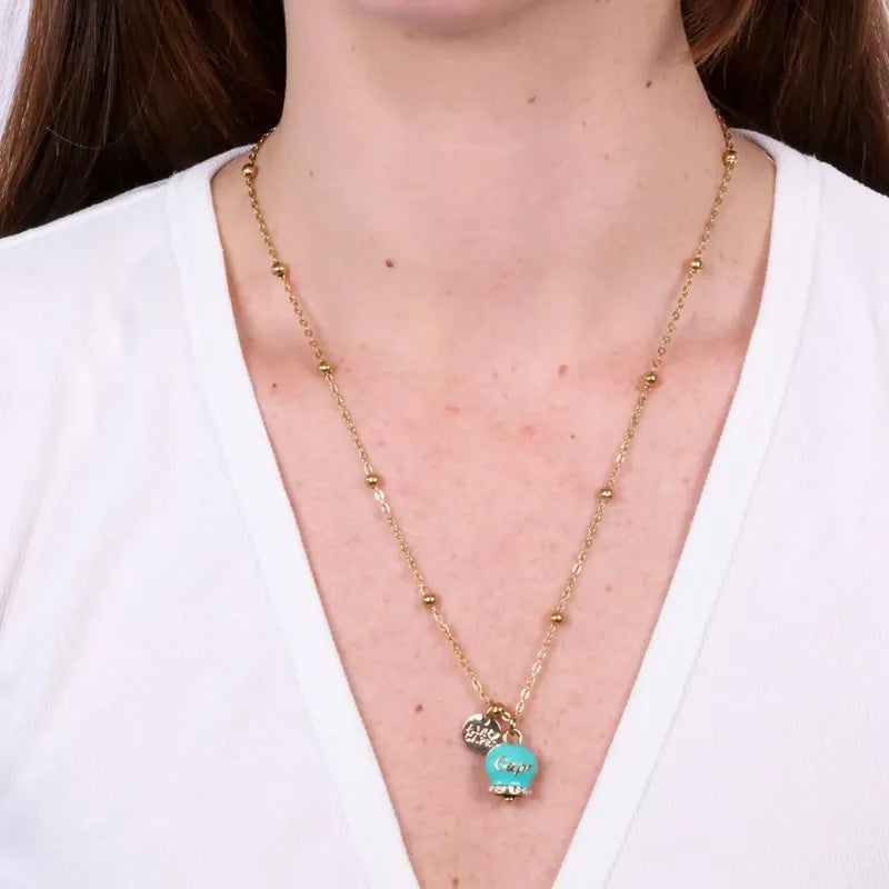 Collana in Acciaio con campanella pendente verde con scritta Capri