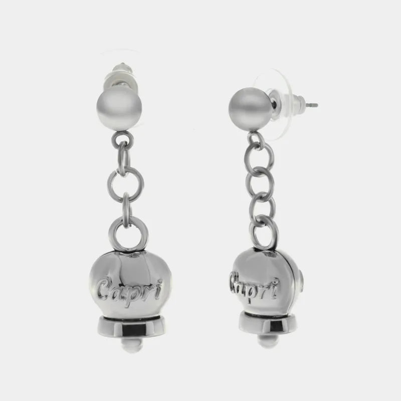 Orecchini in Acciaio con campanella pendente con scritta Capri