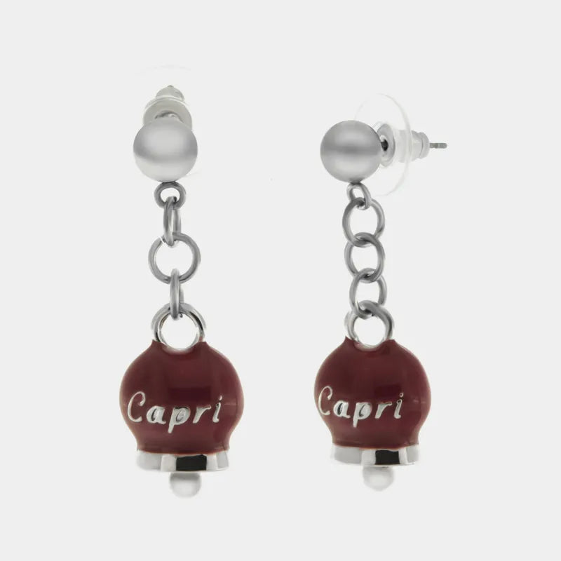Orecchini in Acciaio con campanella pendente rosso con scritta Capri