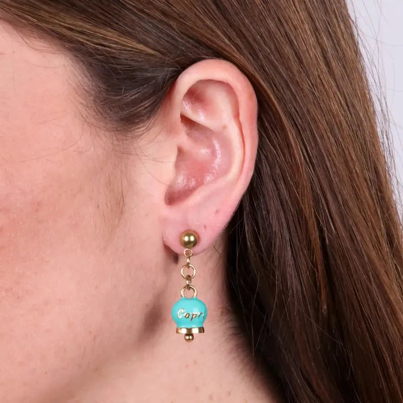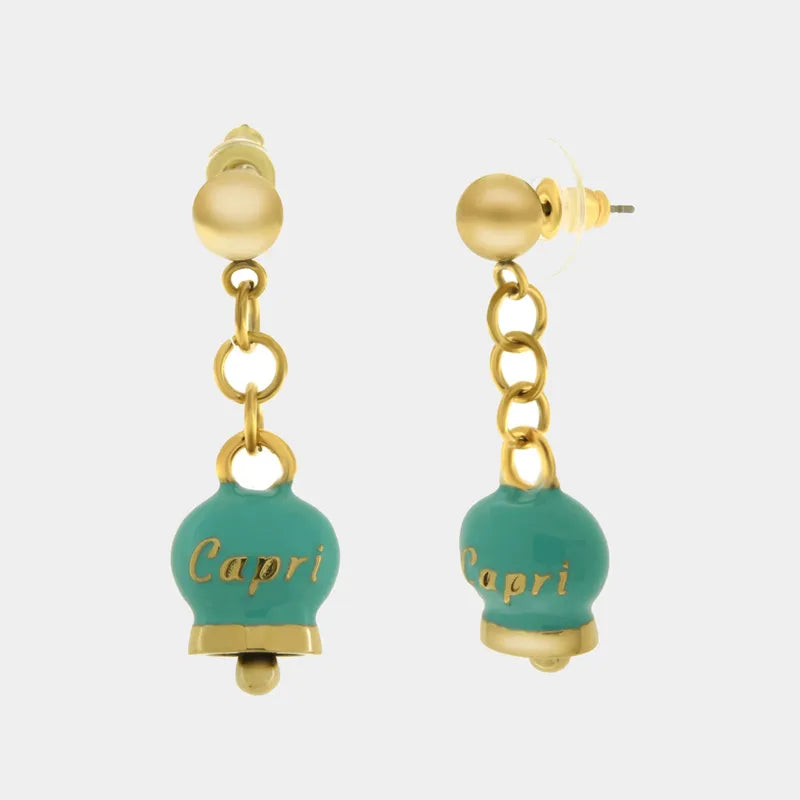 Orecchini in Acciaio con campanella pendente verde con scritta Capri